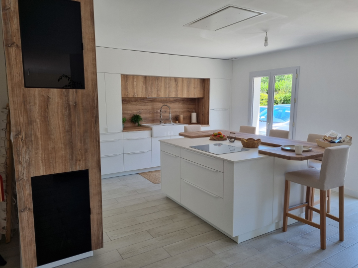 Chaque détail a été pensé pour sublimer le quotidien : des lignes épurées, un îlot central convivial, des rangements intégrés et des matériaux choisis pour leur élégance et leur durabilité.