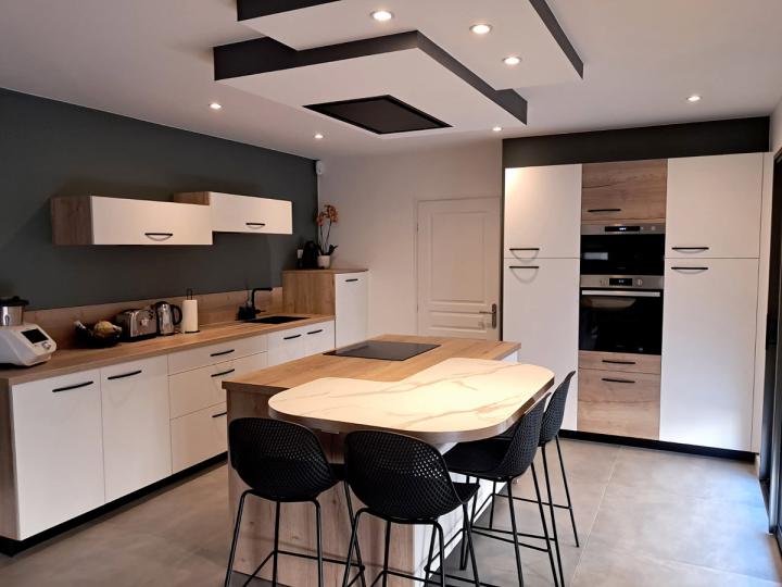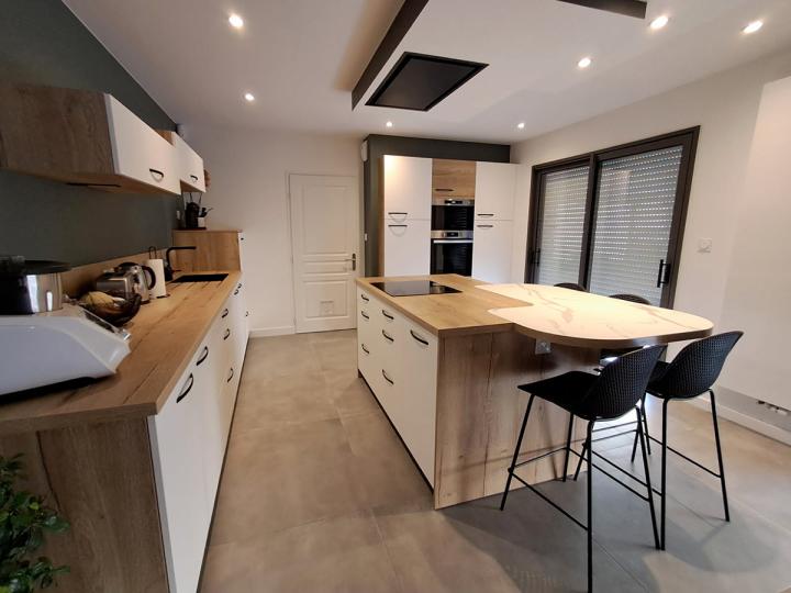 Pensée comme un véritable lieu de vie, cette cuisine conjugue esthétique, confort d’usage et convivialité au cœur de la maison.