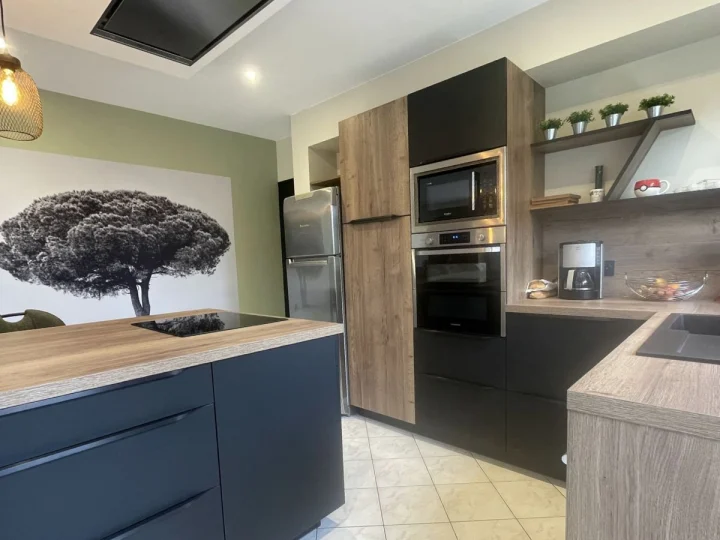 - Colonnes d’électroménager encastrées : Un four et un micro-ondes à hauteur d’œil pour un confort d’usage optimal.